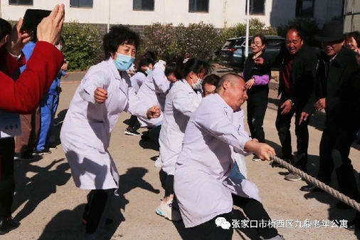 为展示医院和公寓全体职工的精神面貌,提升部门之间的凝聚力、战斗力,汇聚乐济医院(乐济医院党支部)▪九鼎老年公寓(大境门非公企业第三联合党支部)内部的团结力量,增强团队合作精神,展示员工积极向上的精神风貌,丰富公寓文化生活,医院与公寓在五一劳动节举办第四届职工拔河比赛。